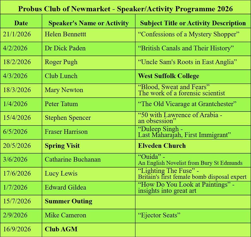 probus programme 2026 to AGM